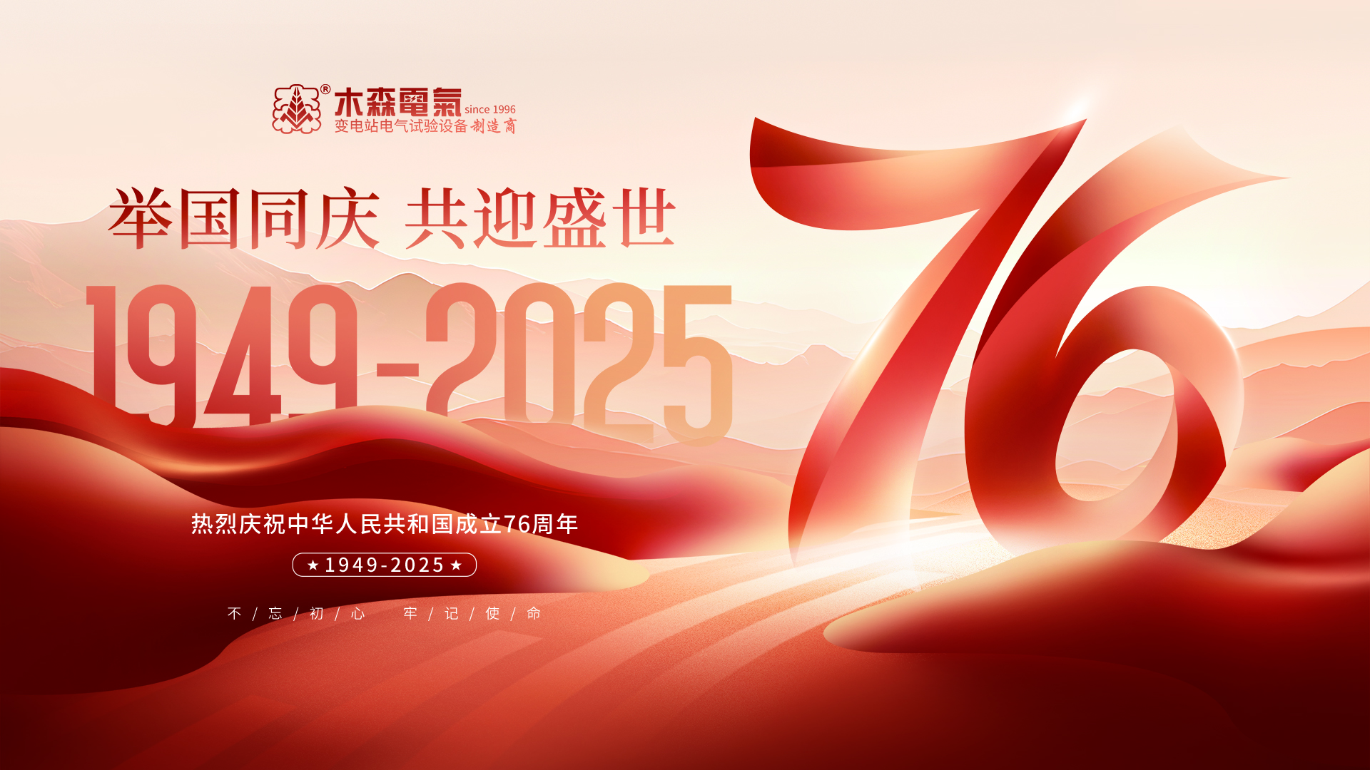 ??七十六載風華正茂,九州方圓燈火輝煌。?? 值此中華人民共和國成立76周年國慶佳節來臨之際,武漢市木森電氣有限公司攜全體員工,向長期以來信賴與支持我司發展的各級電力單位、行業伙伴與廣大客戶,致以最崇高的敬意和最誠摯的節日祝福!